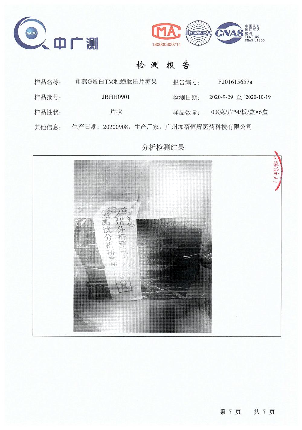 角燕G蛋白产品检测报告(每个批次都有检测报告,这里仅发布一个批次)